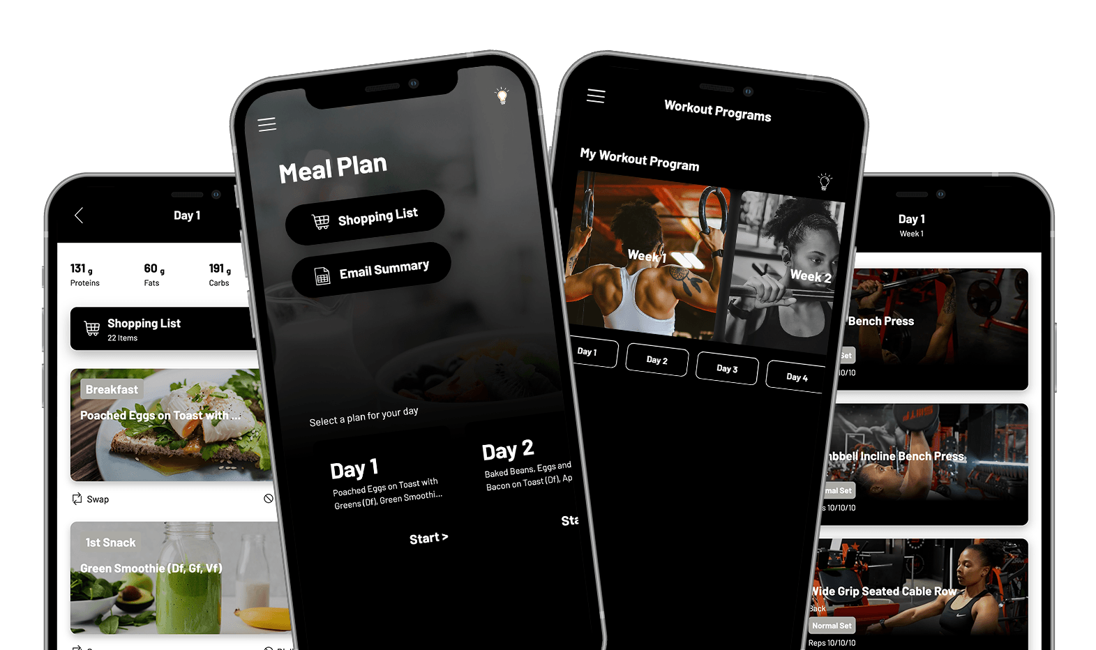 Fitsquad members receive their programs online, accessible on your Mobile phone. You can take your personalised meal plans and training programs with you to both the supermarket and the gym!